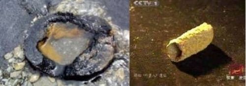 Xinmin Weekly, una revista china semanal, reportó en 2003 que los científicos utilizaron espectroscopía de emisión atómica para llevar a cabo un análisis químico detallado de los fragmentos de tubo oxidad. Encontraron materia vegetal en un análisis de las tuberías, y también se encontró lo que parecía ser anillos de los árboles. El artículo relaciona el hallazgo de una teoría geológica que en ciertas temperaturas y bajo ciertas condiciones químicas, las raíces del árbol pueden sufrir diagénesis (transformación de suelo en roca) y otros procesos que pueden producir formaciones de hierro. Se comparó este fenómeno con las raíces de árboles fosilizados en el sur de Louisiana o los tubos fósiles de Navajo (Estados Unidos).