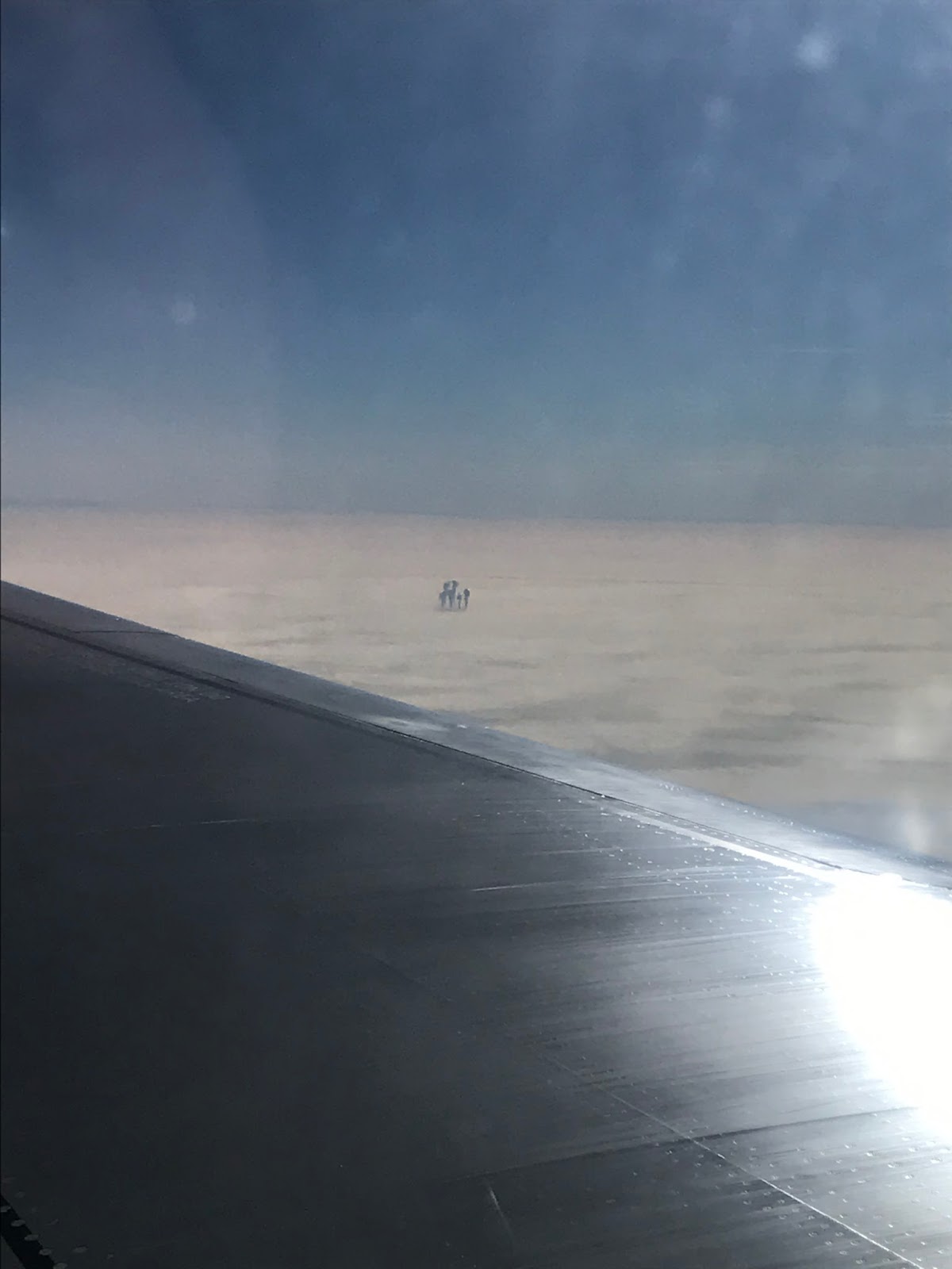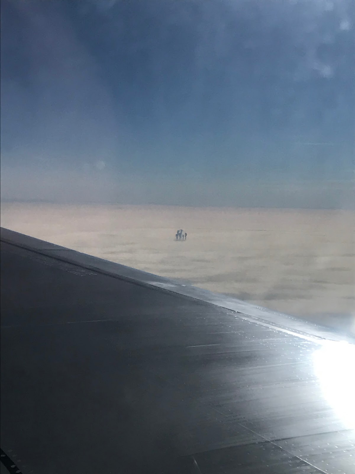Sin embargo, en este nuevo avistamiento, realizado en este mes de febrero (2017), las fotografías captadas desde el avión de pasajeros muestran varias figuras que se posan por encima de las nubes.