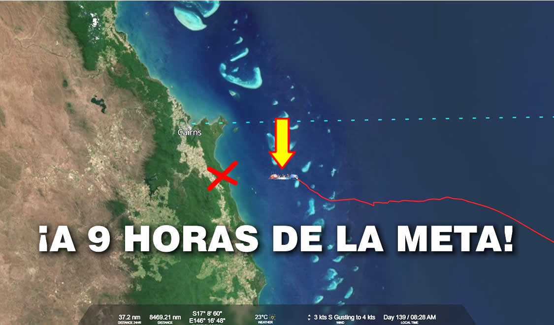 Finalmente, los tres hermanos escoceses, Ewan, Jamie y Lachlan Maclean se encuentran a pocas horas de llegar a la meta, en Australia. Se espera que dentro de 9 horas los hermanos Maclean arriben a Cairns, Australia (a las 18:00 horas de Australia).