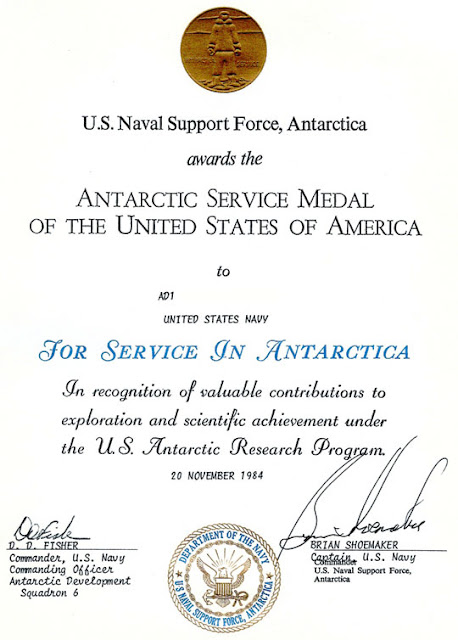 Él ha proporcionado a Earthfiles diversos documentos y otros certificados de servicio incluyendo una medalla al servicio de la Antártida que se le otorgó el 20 de noviembre de 1984 como prueba de su tiempo en servicio.