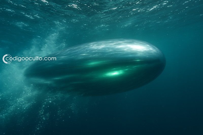 No es la primera vez que se reporta un objeto submarino no identificado de enormes proporciones y moviéndose a sorprendente velocidad. Crédito de imagen: GPT-5. Edición: codigooculto.com