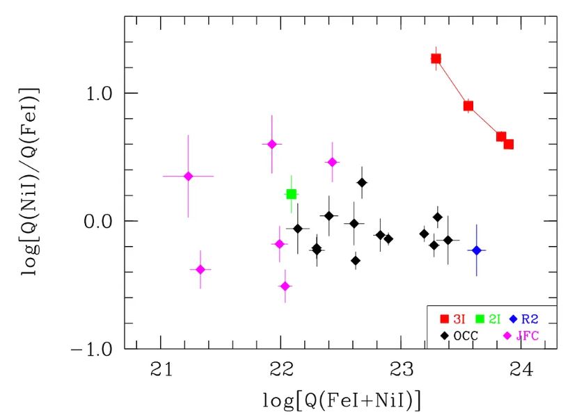 En cometas tradicionales del sistema solar, el níquel es un elemento presente en bajas proporciones y ligado normalmente a minerales refractarios, es decir, materiales que requieren temperaturas muy elevadas para sublimarse. Por lo general, los cometas activos liberan agua, dióxido de carbono, monóxido de carbono y polvo, pero no grandes cantidades de metales pesados.
