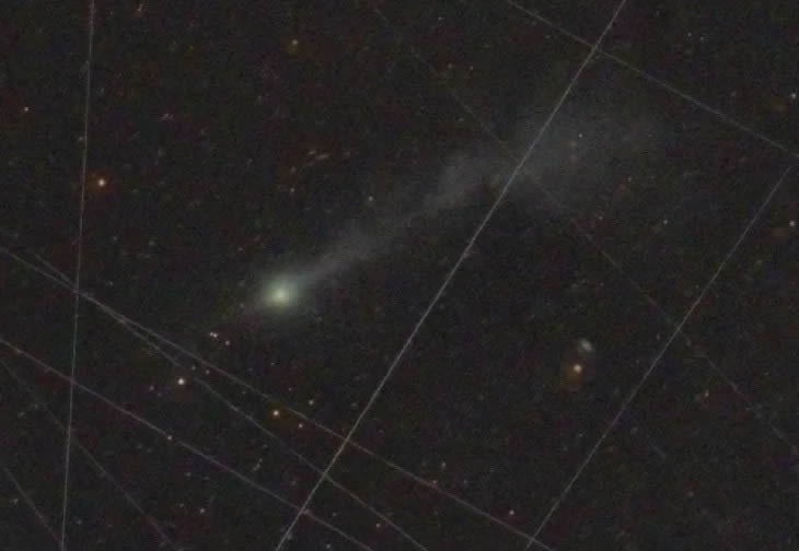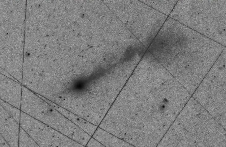 La imagen ha sido muy procesada para mostrar la cola antípoda y la cola “humeante”. Crédito de imagen: Frank Niebling y Michael Buechner / British Astronomical Association